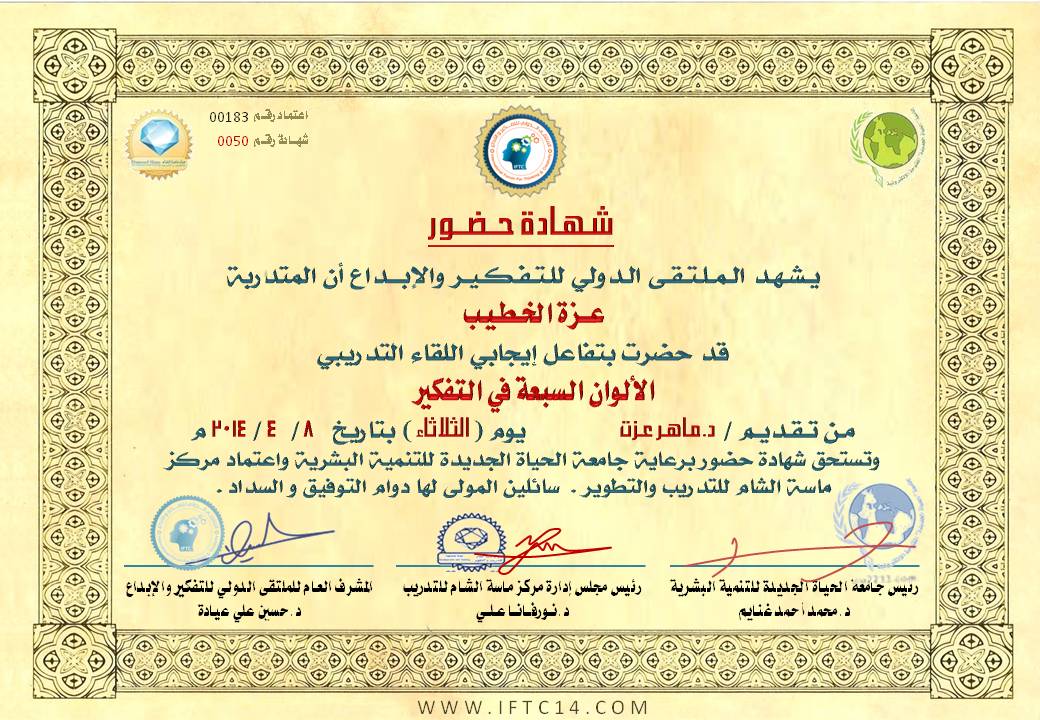 ►شهادات حضور معتمدة لدورة الألوان السبعة للتفكير◄